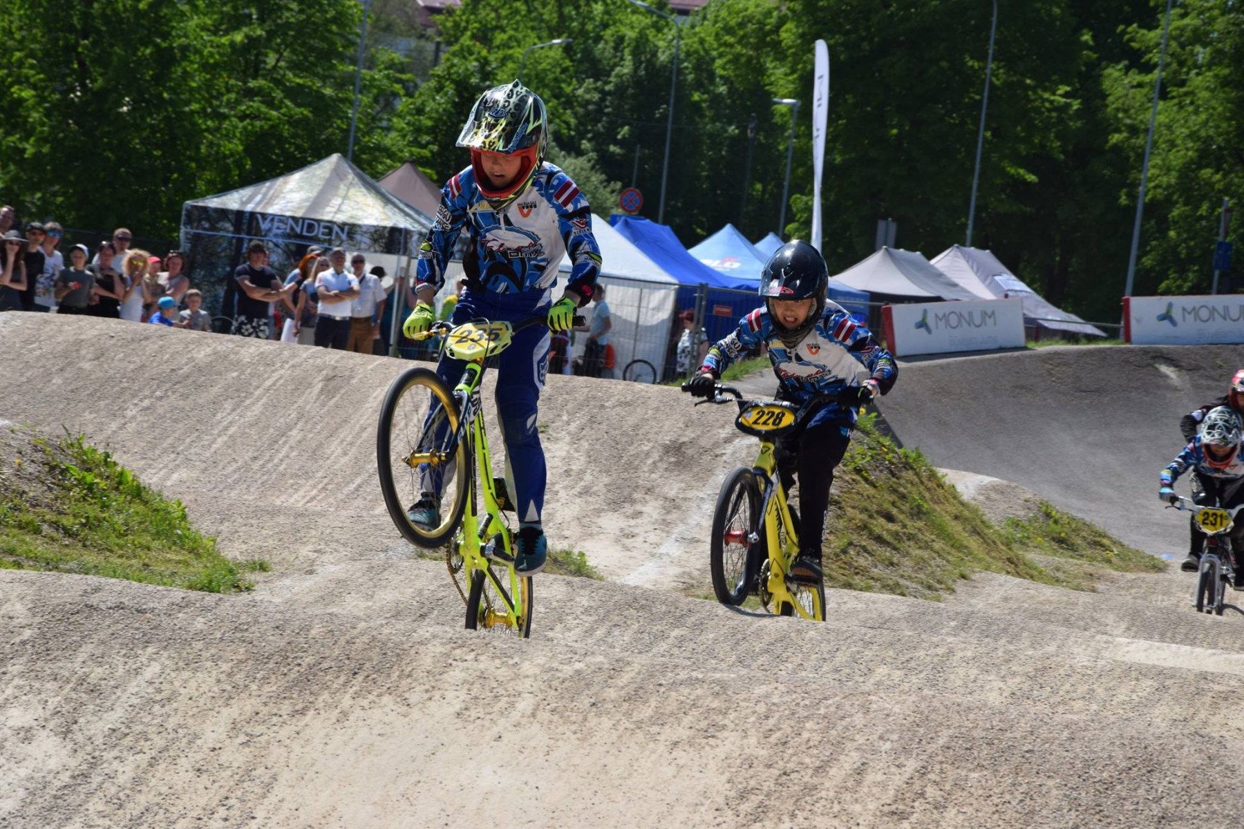“SMSCredit.lv” Latvijas BMX čempionāta kopvērtējumā pēc aizvadītajiem trim posmiem pārliecinošās līderpozīcijās savās ieskaites grupās ir Adelīna Kārkliņa, Līva Lizete Glāzere, Edvards Glāzers, un krūzeru ieskaitē ir Imants Sokolovs. Otrajā pozīcijā meiteņu G7 grupā ir šīs sezonas debitante Anna Pedraudze, G8/10 grupā Madara Kate Treimane, Emīls Mārtiņš Treimanis B13grupā un Sandra Aleksejeva(JW/EW). Savukārt, B11 grupā trešā lielākā punktu summa ir Ralfam Frīdvaldam, bet īpaši spraiga cīņa paredzama B12 grupā, kurā viens aiz otra sarindojušies tālavieši – Rojs Daniels Lazars (3.vieta), un Gustavs Kārlis Jurevičs (4.vieta). Kārlis Pedraudzis stabili notur trešo pozīciju B13 grupas kopvērtējumā.