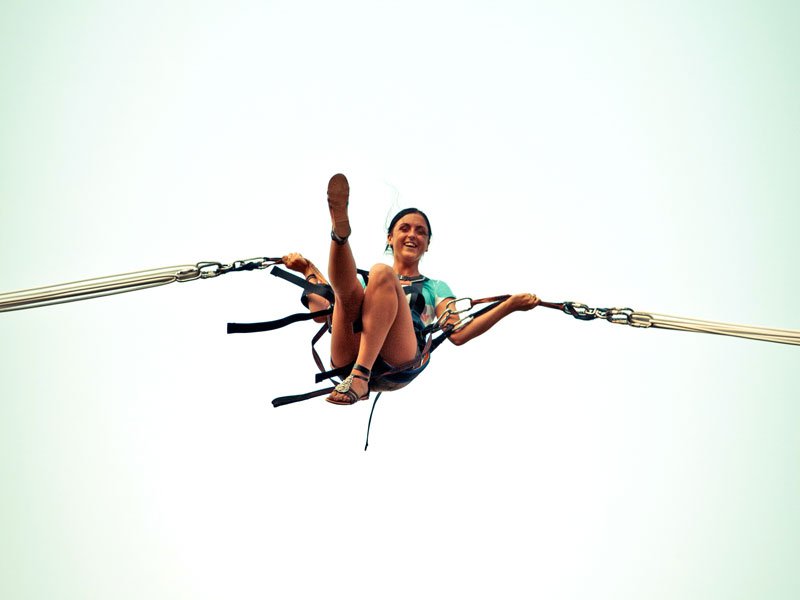 Tu izbaudīsi paātrinājumu un uzlidosi 20m augstumā, kam sekos atrašanās bezsvara stāvoklī, brīvais kritiens atpakaļ un šūpošanās gumijās! Svara ierobežojumi: 35-110 kg robežās. Auguma ierobežojumi: ne mazāk, kā 1,30 m