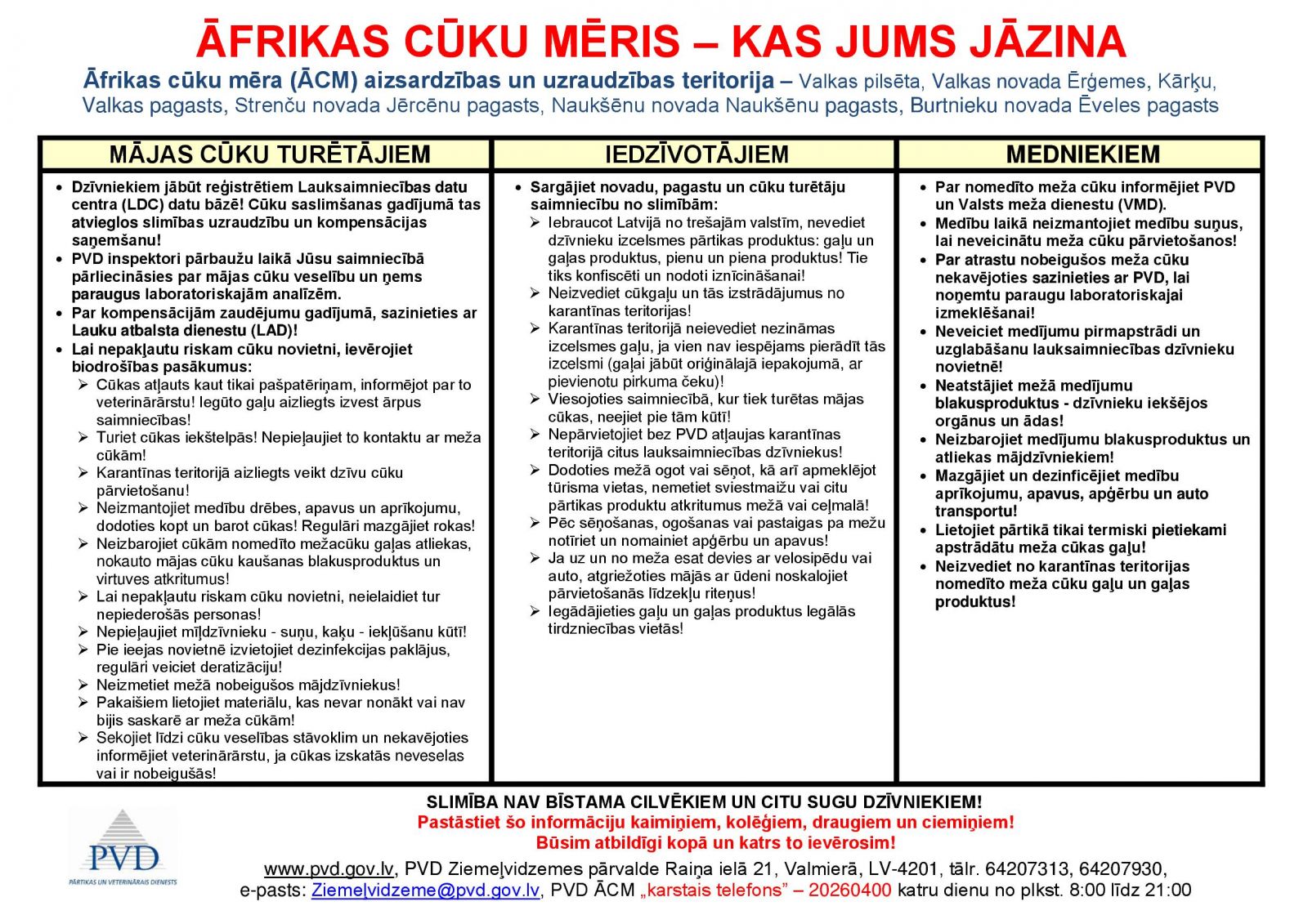 Pārtikas un veterinārā dienesta Āfrikas cūku mēra "karstais telefons" - 20260400.
