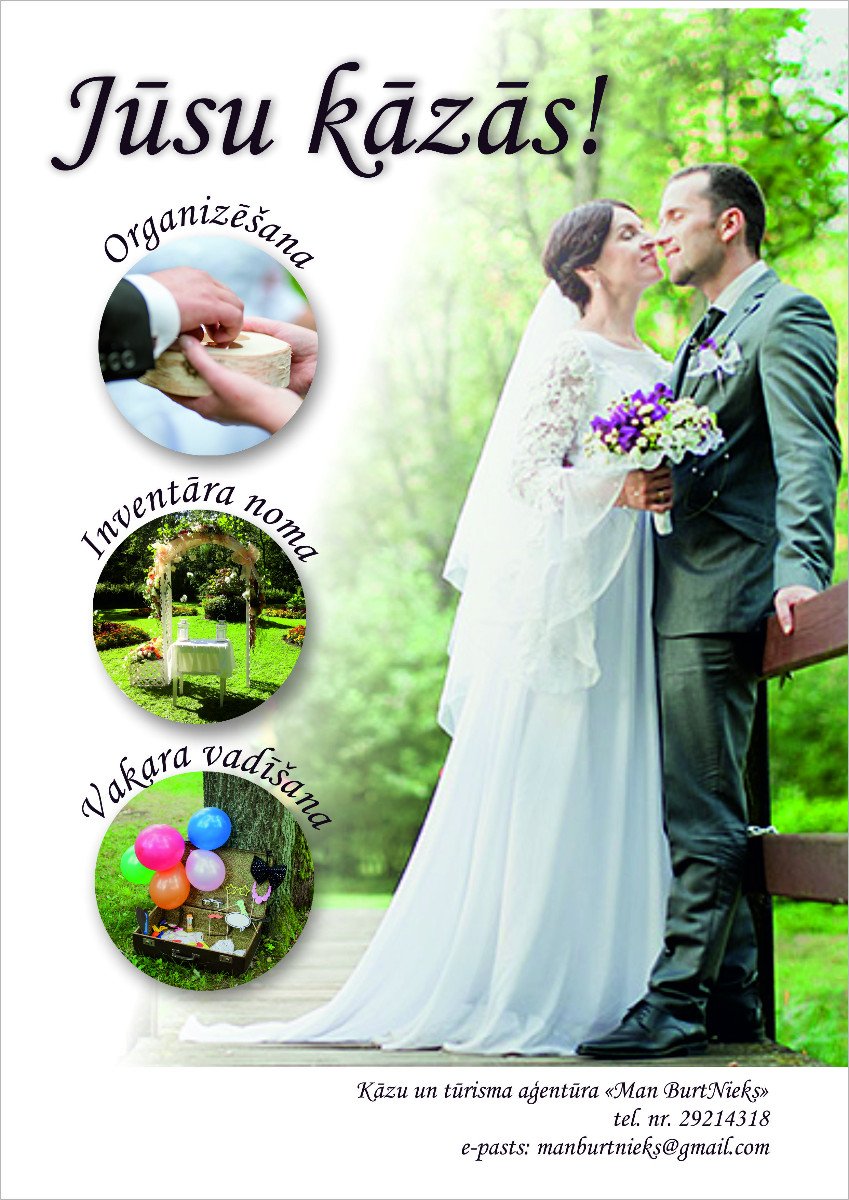 Inventāru kāzām piedāvā tūrisma un kāzu aģentūra „Man BurtNieks”. Tālr. 29214318